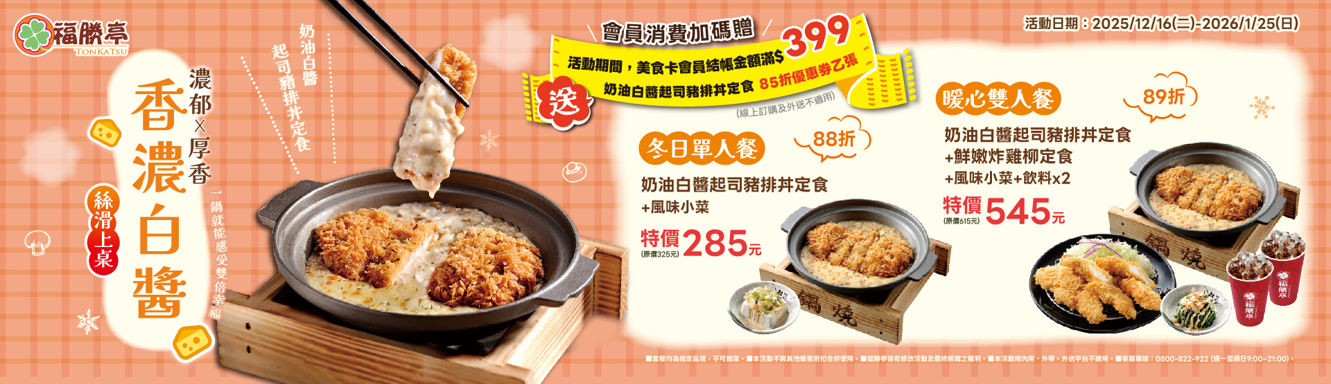 門市部分活動線上訂餐不適用,詳情請見各活動說明,如有需要參與活動請至門市選購,敬請見諒。